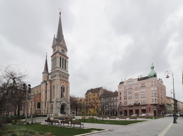 「世界の建築・街並みガイド5」に載っていたファソーリ改革派教会(ヴァーロシュリゲト通りのカルヴァン派教会)です。竣工は1913年。