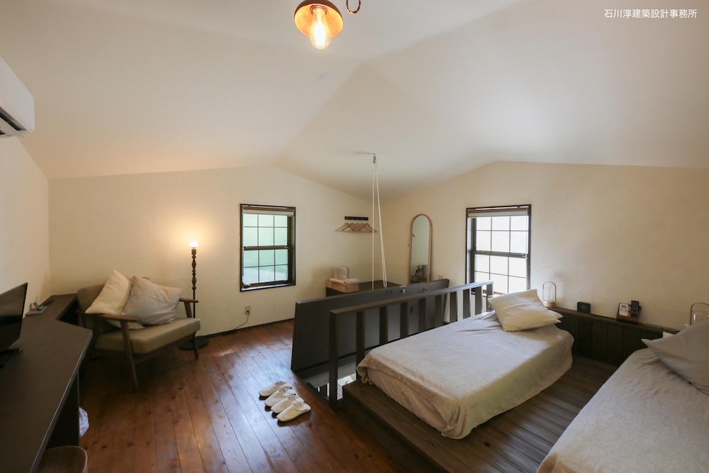 本館と離れ棟2つの構成の宿で、離れ棟の客室は新たにキッチンを併設してコンドミニアムタイプに改修し、本館の2階にあった3つの客室は1室としてつなげ、スイートルームに改修しました。